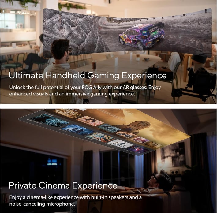 The ASUS AirVision M1 Smart AR Glasses provide an immersive, multi-functional experience that bridges the gap between gaming, work, and entertainment. With a 100-inch Micro-OLED display, seamless connectivity, and ergonomic design, they offer high-end AR capabilities without the high-end price tag.