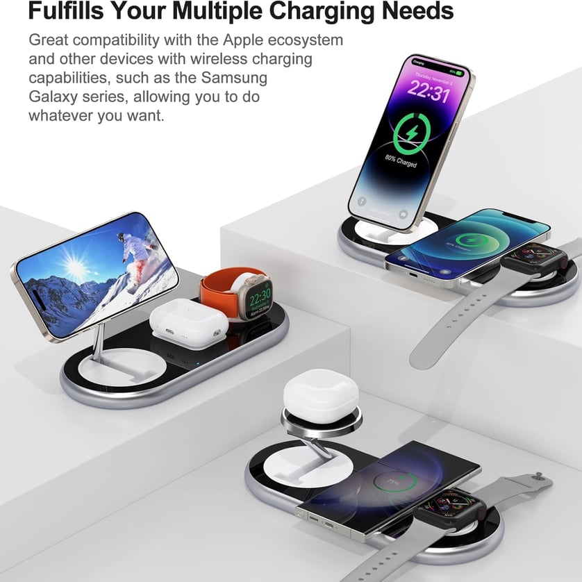 Enter the 3-in-1 Charging Station with MagSafe – a game-changing wireless charger that delivers convenience, speed, and a modern aesthetic for your home or office.
