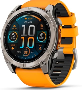 The Garmin fēnix® 8 – 51 mm is not just another premium multisport GPS smartwatch; it’s a trusted companion for explorers, athletes, and tech enthusiasts who demand the best. With a stunning AMOLED display, titanium build, and a spark orange/graphite band, it blends rugged durability with high-end sophistication. Whether you're training for your next marathon, scaling mountain peaks, or diving deep into the ocean, the fēnix 8 is built to perform. Let’s explore what makes this smartwatch stand out.