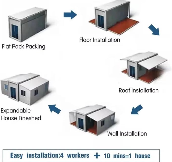 ✅ Quick Setup: Unlike traditional homes, this modular container home can be set up in hours or days instead of months.