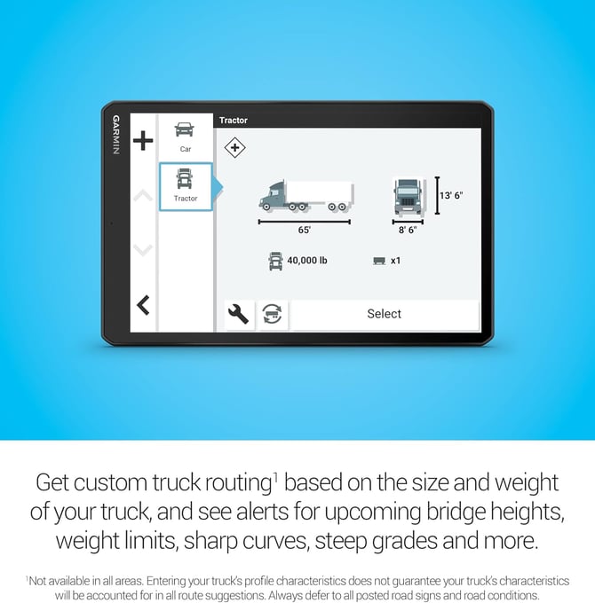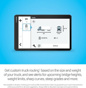 Custom Truck Routing – Enter your rig’s size and weight, and the Garmin dēzl OTR1010 finds the safest, most efficient route.