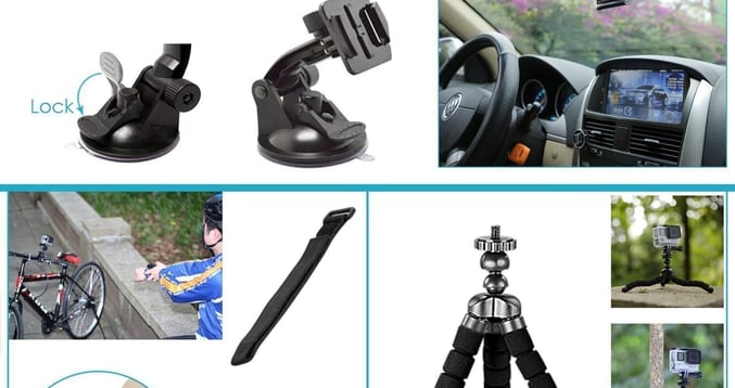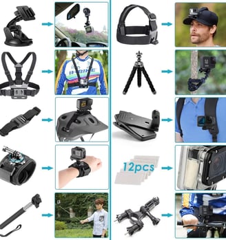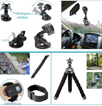 Includes mounts, straps, cases, tripod, floating handle, chest harness, helmet mounts, and more!