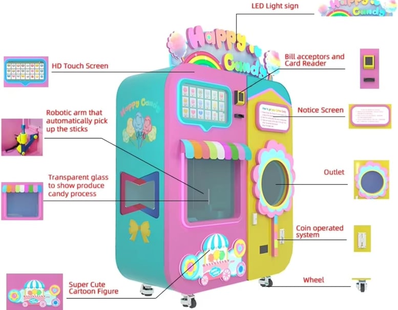 The High-Tech Mini Cotton Candy Machine is an exciting, low-maintenance investment with high revenue potential. Whether you're an entrepreneur looking for a passive income source or a business owner wanting to enhance customer engagement, this innovative vending machine is a sweet deal that pays off!