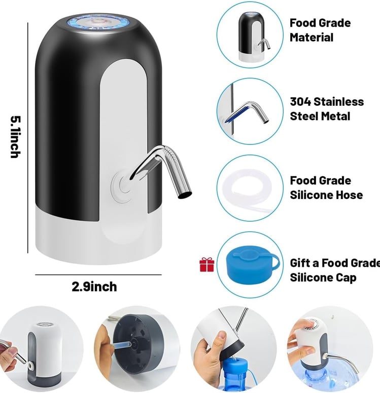Universal Fit: Compatible with most 3, 4, and 5-gallon water bottles.