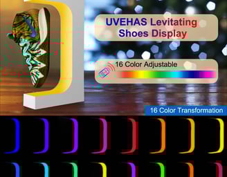 Showcase your sneakers like never before with the UVEHAS Levitating Shoe Display! Featuring magnetic levitation, 360° rotation, and 16-color LED lighting, it's the ultimate stand for collectors, sneakerheads, and retailers. Get yours today! 🚀🔥